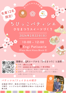 今月は「ちびっこパティシエ ひなまつりスイーツづくり」です。